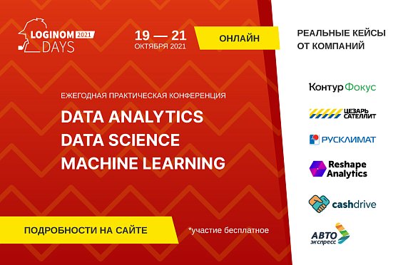 Практическая конференция Loginom Days 2021 — уже ставшее традиционным мероприятие, посвященное глубокому анализу данных. Организатор конференции — Loginom Company — российский вендор аналитической платформы Loginom.